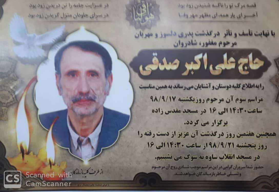 شرح حال بیماری مهندس حاج علی اکبر صدقی ساوجی