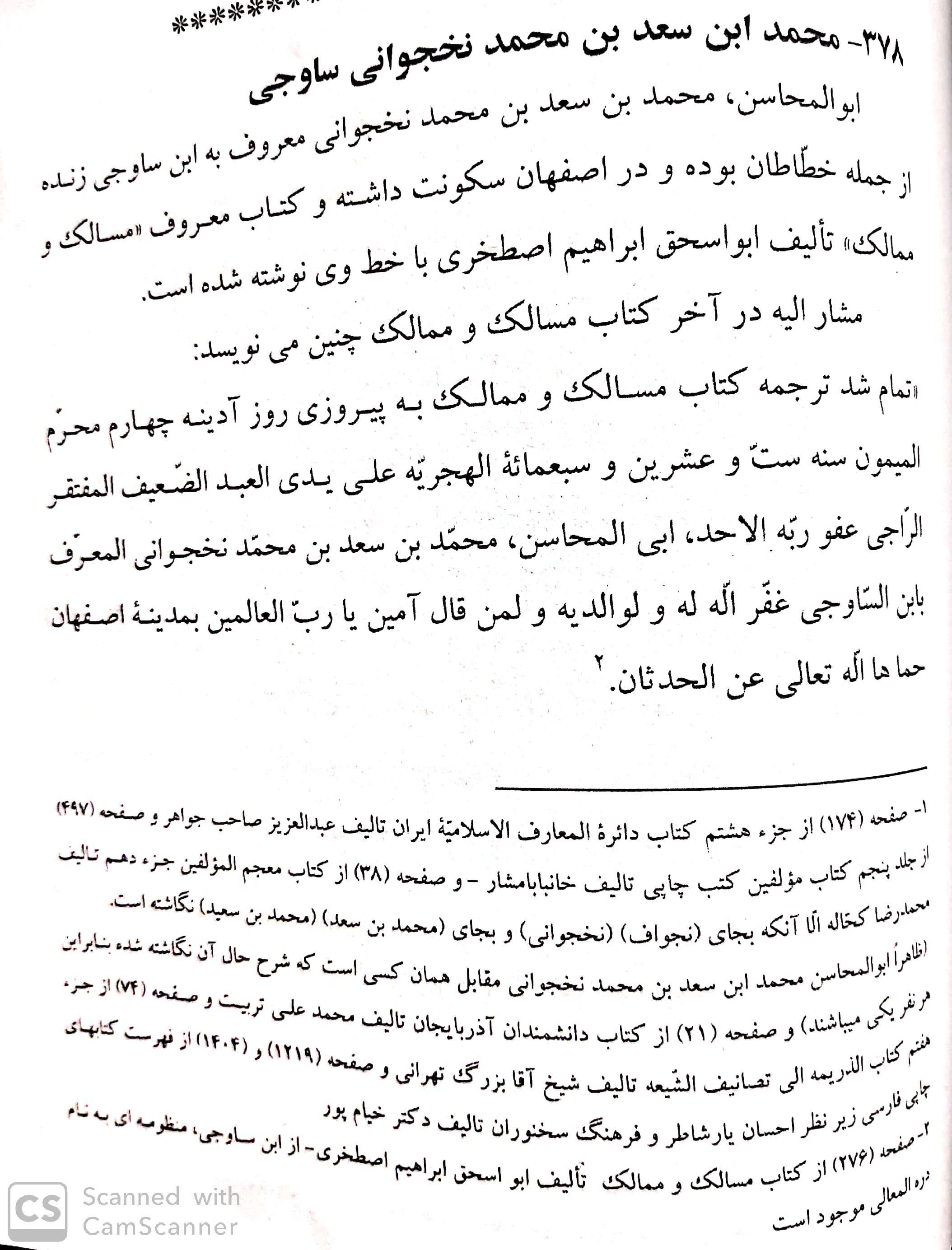 ابوالمحاسن محمد بن سعد بن محمد نخجوانی معروف به ابن ساوجی زنده از جمله خطاطان بوده ودر اصفهان سکونت داشته وکتاب معروف ( مسالک وممالک) تالیف ابو اسحق ابراهیم اصطخری با خط وی نوشته شده است...