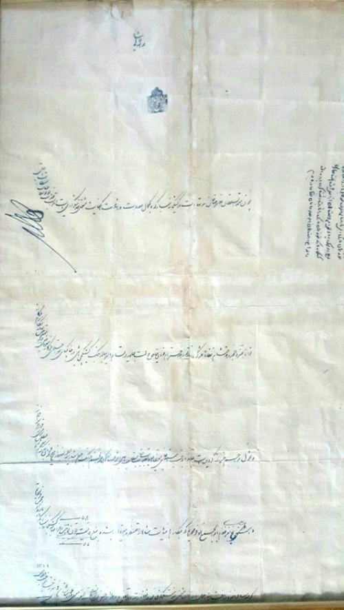 فرمان سرتیپی مرحوم منصور سلطان پدر بزرگ پدرحقیر که در کنار فرمان، امضا و توشیع خود مظفر الدین شاه نیز مشخص است.