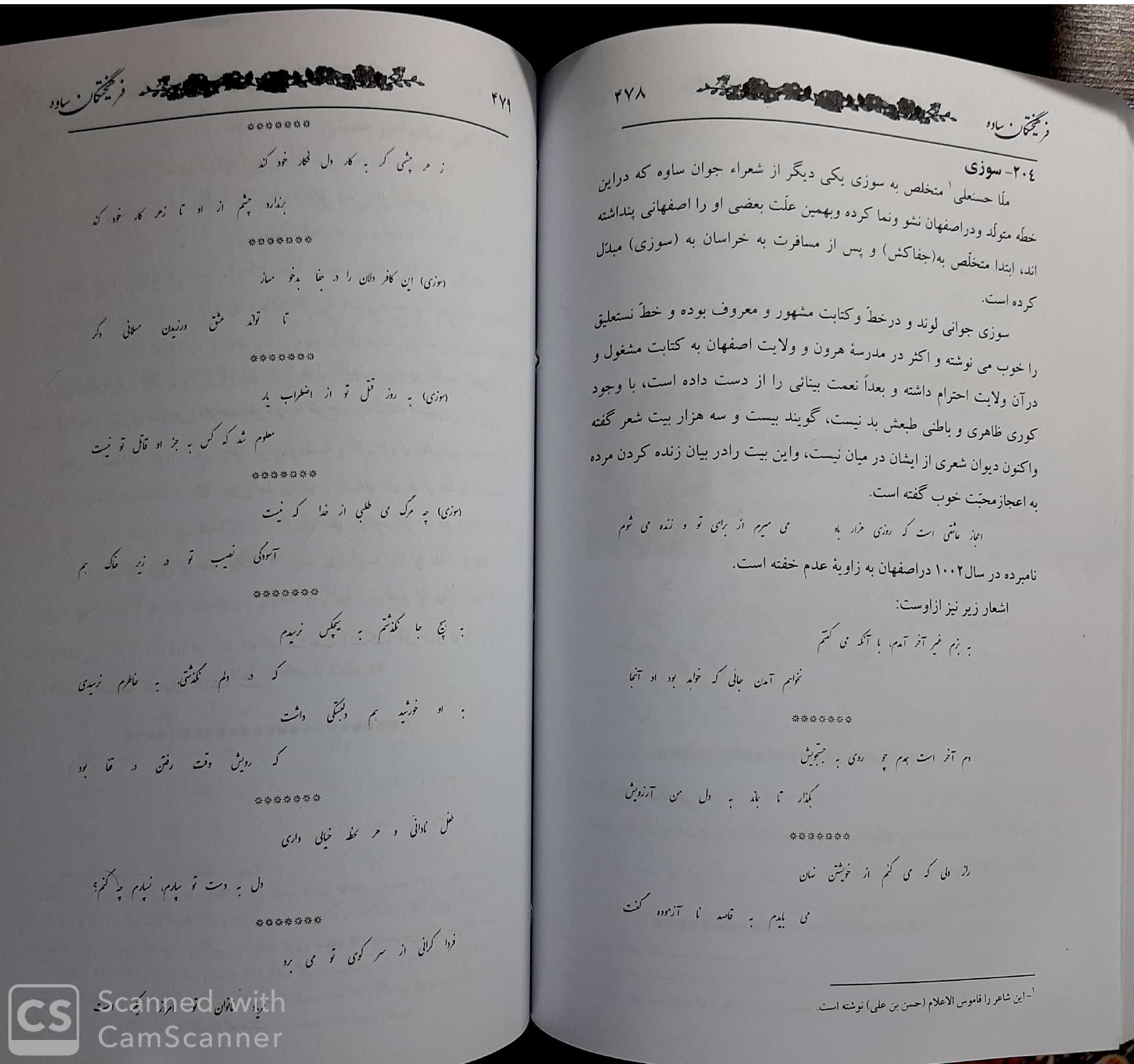 ملاحسنعلی .1متخلص به سوزی یکی از شعراءجوان ساوه که در این خطه متولد ودر اصفهان نشو نما کرده وبه همین علت بعضی اورا اصفهانی پنداشته اند