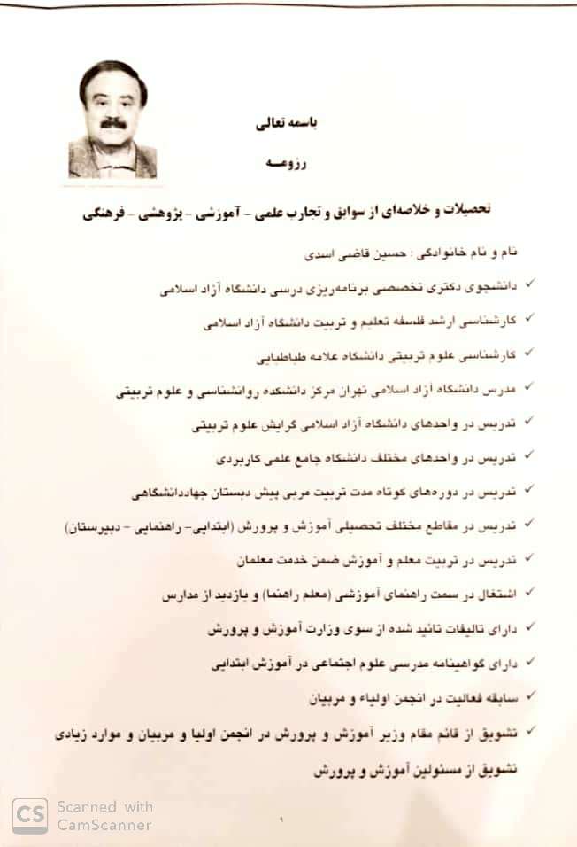 اقای حسین فرزند استاد ابوالقضل قاضی اسدی ساوجی دانشجوی دکترای برنامه ریزی مدرس دانشگاه های آزاداسلامی علمی کاربردی درتهران