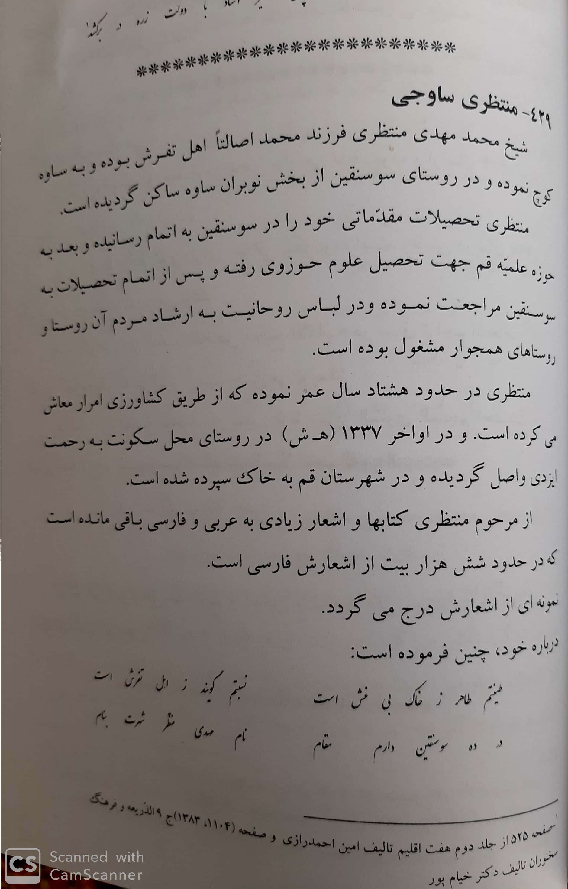 شیخ محمد مهدی منتظریفرزند محمد اصالتا تفرش بوده یه ساوه روستای سوسنقین نویسنده وشاعر