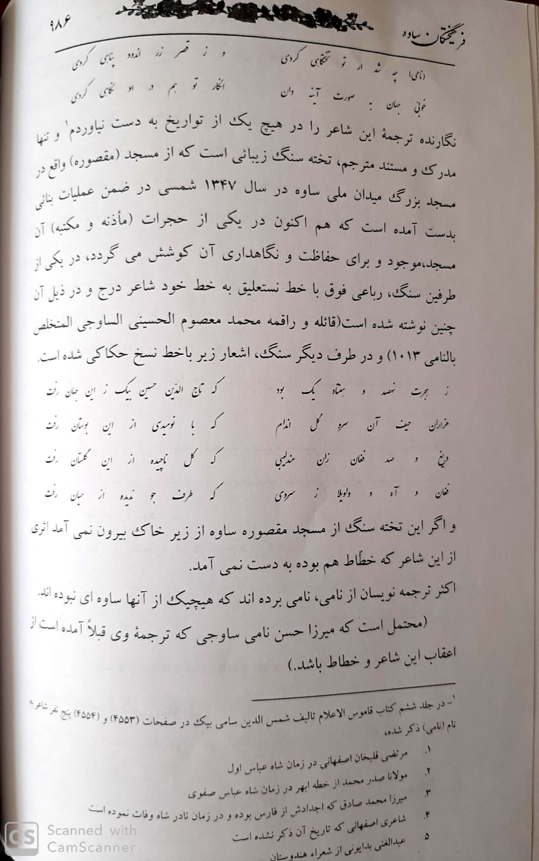 محمد معصوم حسینی ساوجی بنابر تحقیق یکی از شعراءوخوش نویس ساوه