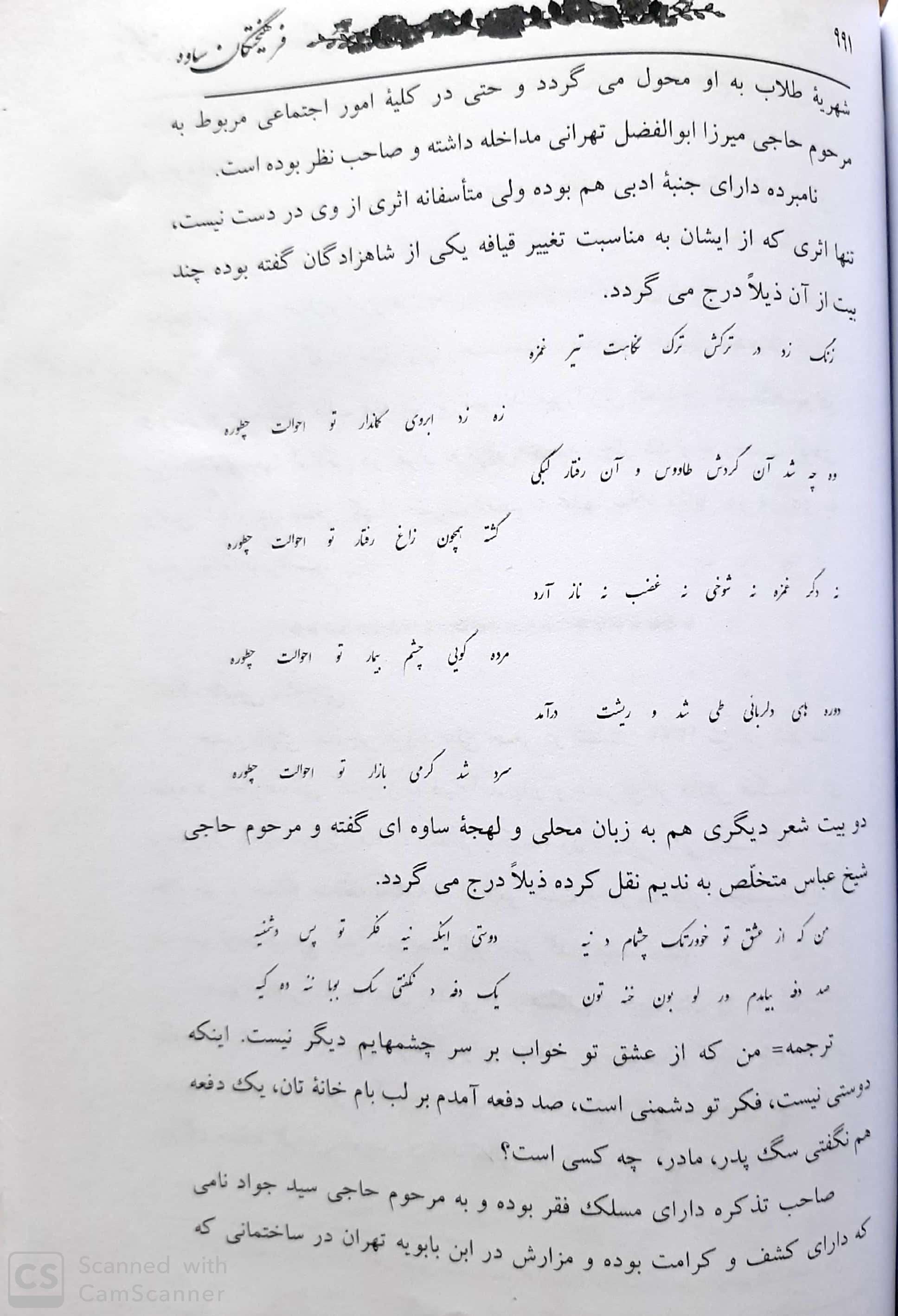 دوبیت شعر دیگری شعر دیگری هم به زبان محلی ولهجه ساوه ای گفته ومرحوم شیخ عباس متخلص به ندیم نقل کرده ذیلا درج می گردد