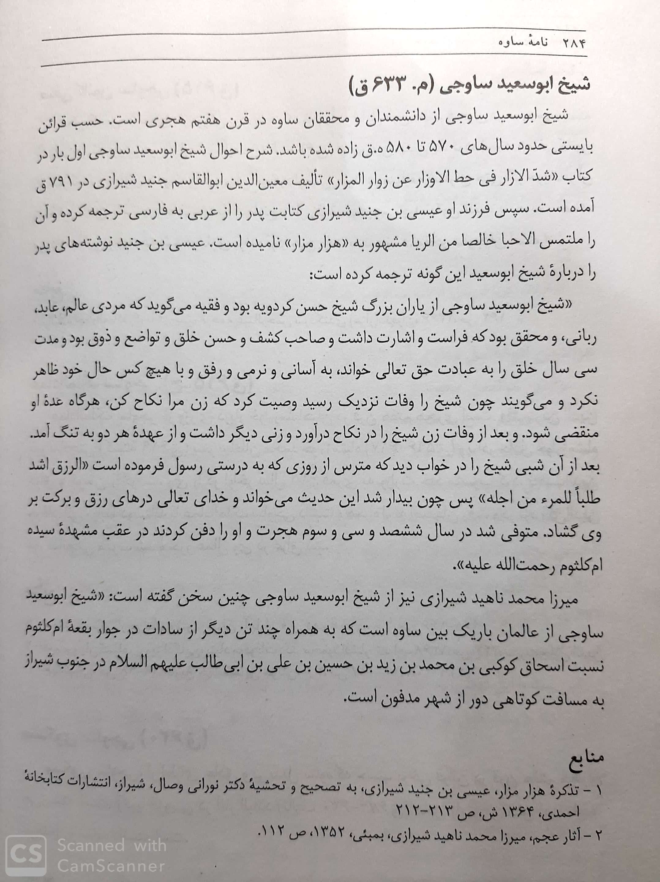 شیخ ابوسعید ساوجی از دانشمندان ومحققان ساوه در قرن هفتم هجری