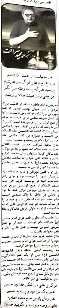 - خادم امام زمان عج در دعای ندبه روز های جمعه بود