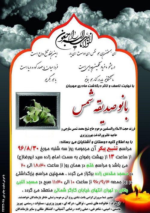مرحومه بانو صدیقه شمس ساوجی